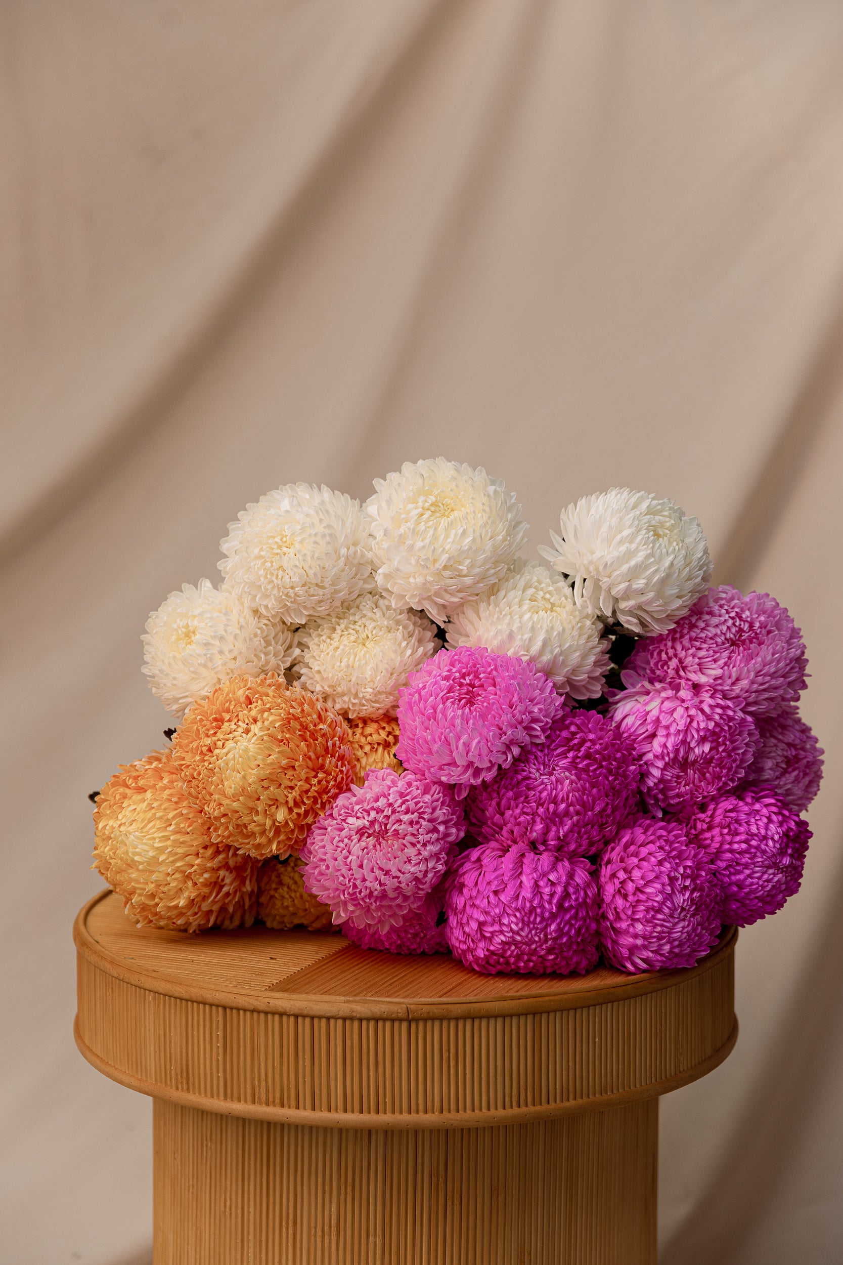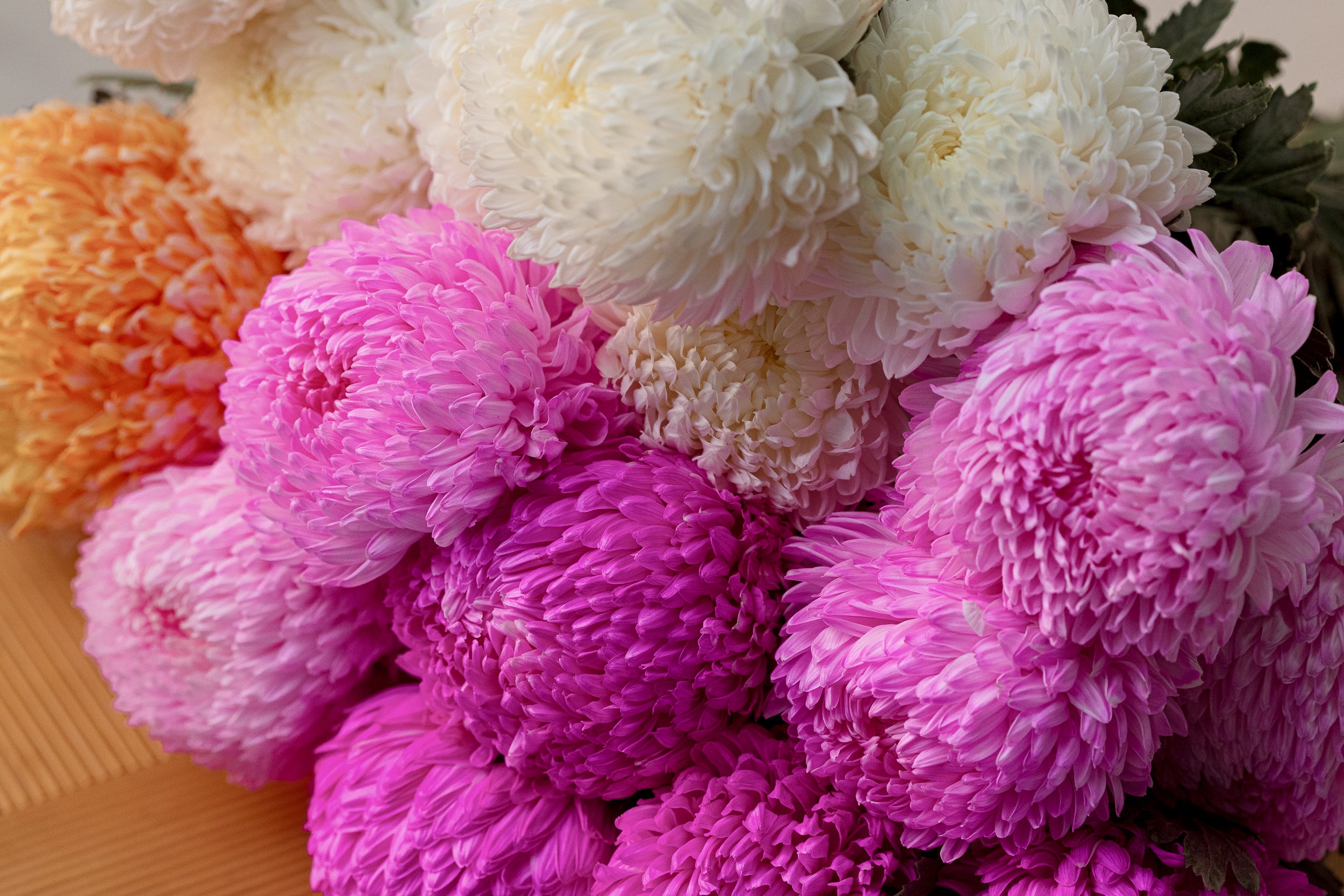 Chrysanthemums will have you floating on cloud nine, being both charmingly feathery and lasting longer than anyone will expect. A bunch of the fluffiest clouds anyone could ever dream of!