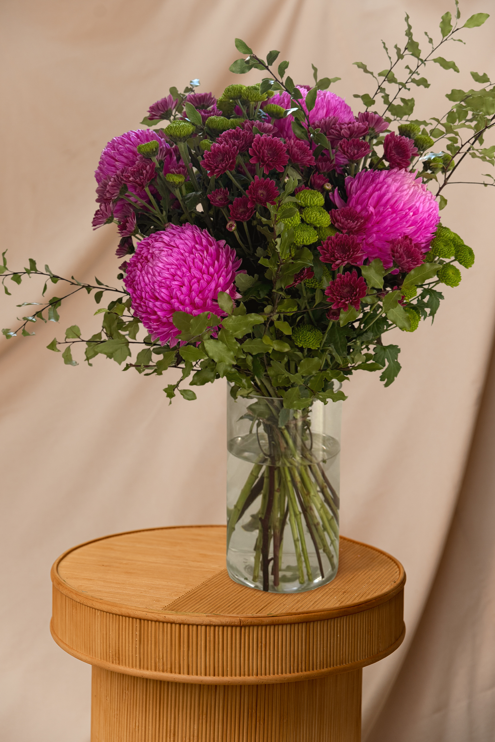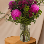 A cheerful burst of colour and charm, the Dionne Bouquet is a vibrant mix of seasonal chrysanthemums and daisies, handcrafted by our florists to brighten any space. With its bold tones and playful textures, this pet-safe bouquet (no lilies here!) is a feel-good favourite—perfect for birthdays, thank-yous, or just because.