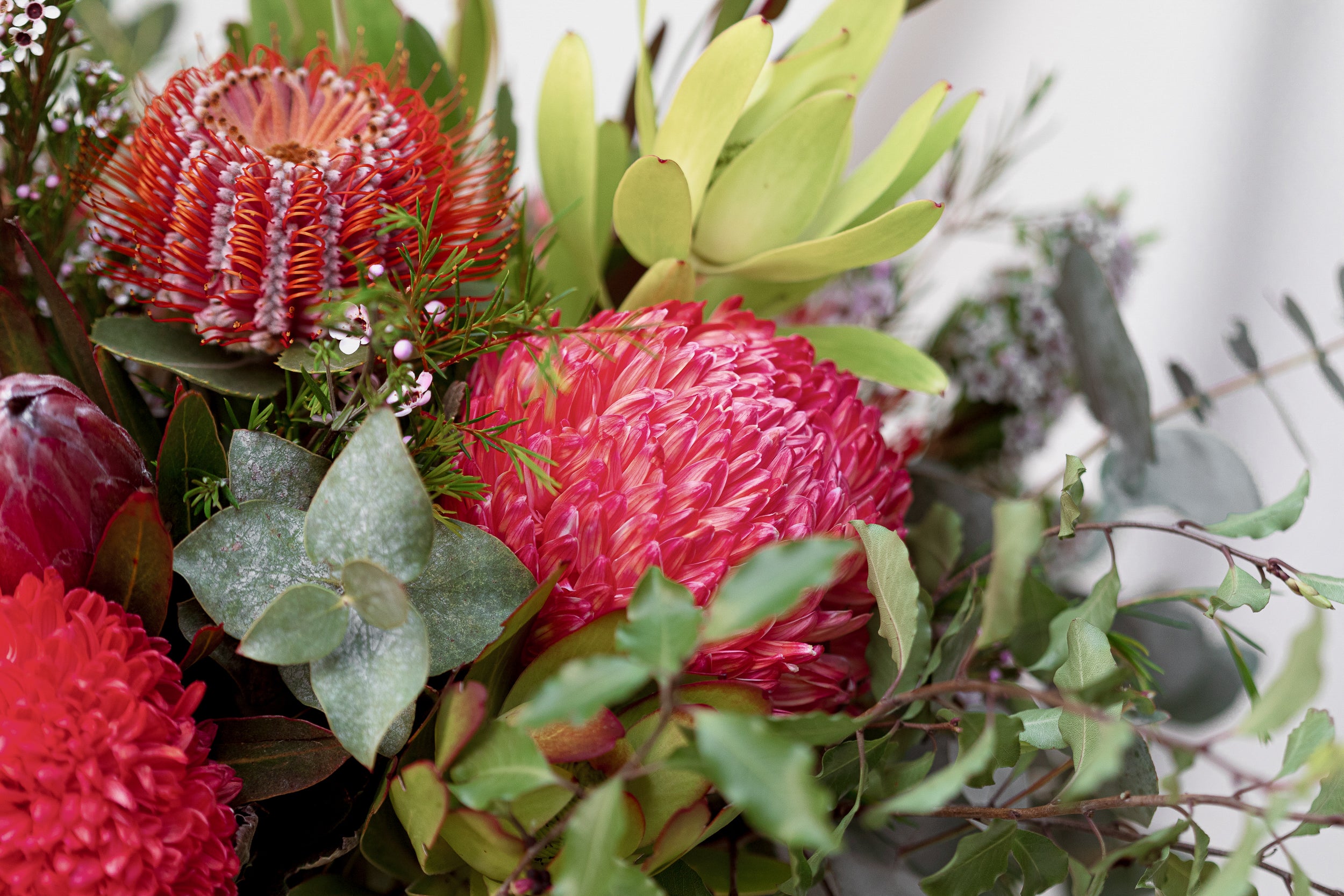 One of our favourite flower combos – locally grown natives and vibrant chrysanthemums.