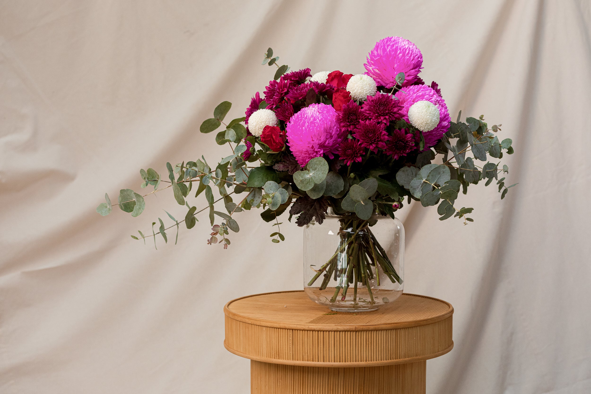Our Viola is an eclectic mix of all shades of pink, purple and white, and is sure to make anyone’s day. Celebrate a birthday, anniversary, graduation or just because!